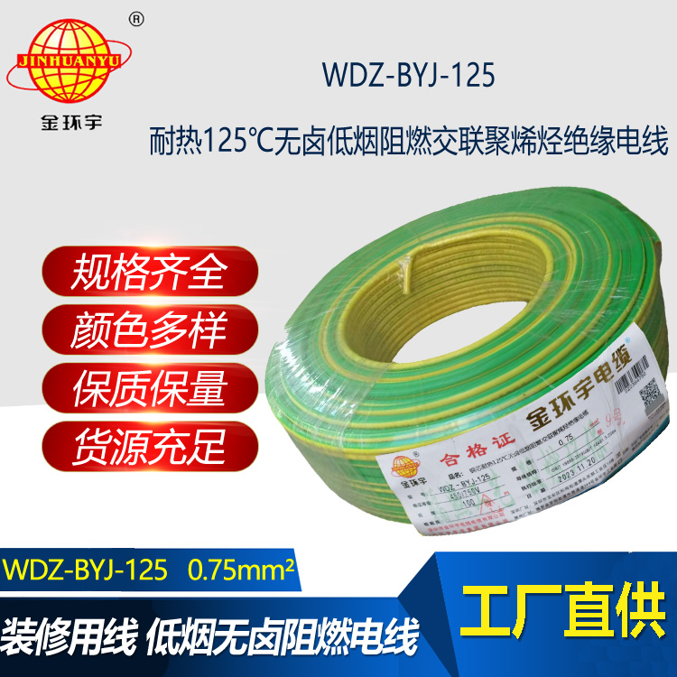 WDZ-BYJ-125:即為低煙無鹵阻燃電線,是指電線的絕緣層材料鹵素物質,在燃燒的情況下,不釋放含鹵氣體,煙霧濃度低,參照標準為JB/T 10491-2004,型號有WDZA-BYJ、WDZB-BYJ、WDZC-BYJ等,