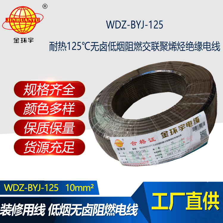 WDZ-BYJ-125:即為低煙無鹵阻燃電線,是指電線的絕緣層材料鹵素物質,在燃燒的情況下,不釋放含鹵氣體,煙霧濃度低,參照標準為JB/T 10491-2004,型號有WDZA-BYJ、WDZB-BYJ、WDZC-BYJ等,