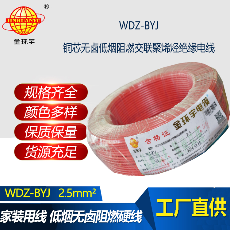 WDZ-BYJ全稱為銅芯無鹵低煙阻燃交聯聚烯烴絕緣電纜;符合解釋說明:WDZ表示低煙無鹵阻燃;B代表布電線;YJ表示交聯聚乙烯;