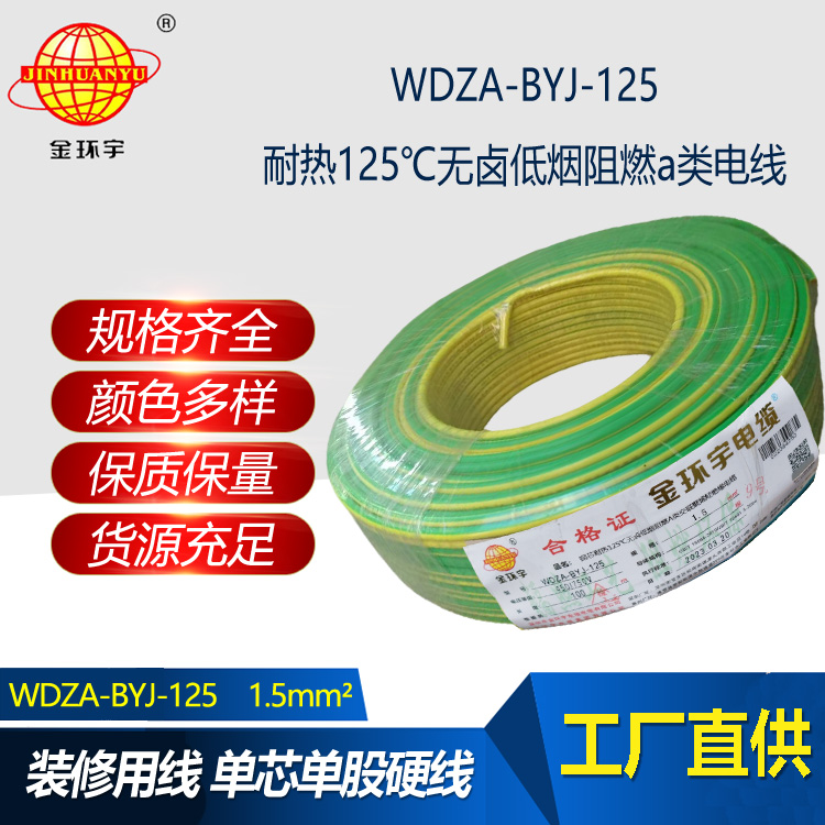 WDZ-BYJ-125銅芯耐熱125℃無(wú)鹵低煙阻燃輻照交聯(lián)聚稀烴絕緣電纜