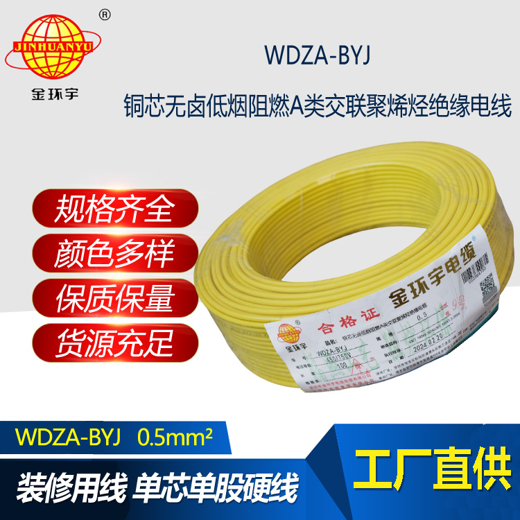 WDZA-BYJ銅芯無鹵低煙阻燃A類交聯聚稀烴絕緣電纜