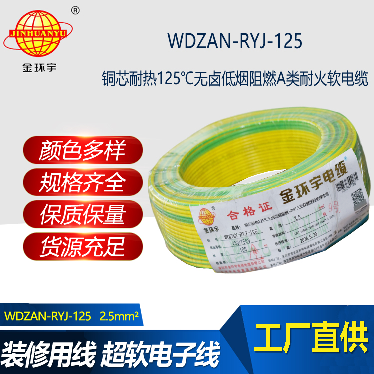 WDZAN-RYJ-125耐熱125℃銅芯低煙無鹵軟阻燃a類耐火軟電線適用于各類建筑人員、項目工作人員和裝修人員,無論是新建還是翻修工程,無論是住宅還是商業空間,都能滿足您的需求。在選擇金環宇的產品時,您可以放心使用,享受高品質的電力體驗。