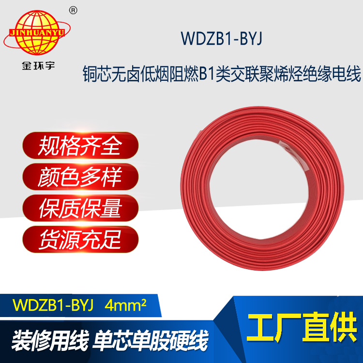 金環宇電線電纜 WDZB1-BYJ 4平方絕緣電線 無鹵低煙阻燃B1級電線