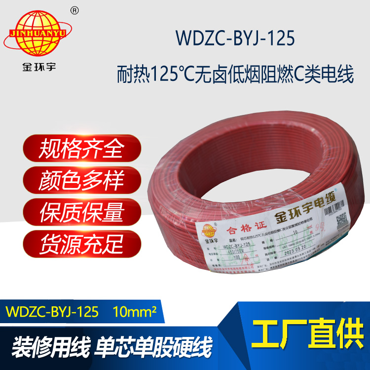 WDZC-BYJ-125℃全稱為耐熱125℃無鹵低煙阻燃C類交聯聚烯烴絕緣電纜;符合解釋說明:WDZ表示低煙無鹵阻燃;C代表C類阻燃;B代表布電線;YJ表示交聯聚乙烯;