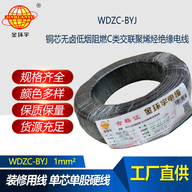 WDZC-BYJ全稱為無鹵低煙阻燃C類交聯聚烯烴絕緣電纜;符合解釋說明:WDZ表示低煙無鹵阻燃;C代表C類阻燃;B代表布電線;YJ表示交聯聚乙烯;