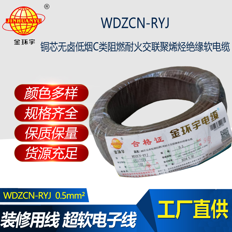 WDZCN-RYJ電纜:全稱C級(jí)阻燃耐火低煙無(wú)鹵交聯(lián)聚烯烴絕緣布電線,執(zhí)行標(biāo)準(zhǔn)GB/T19666-2005。