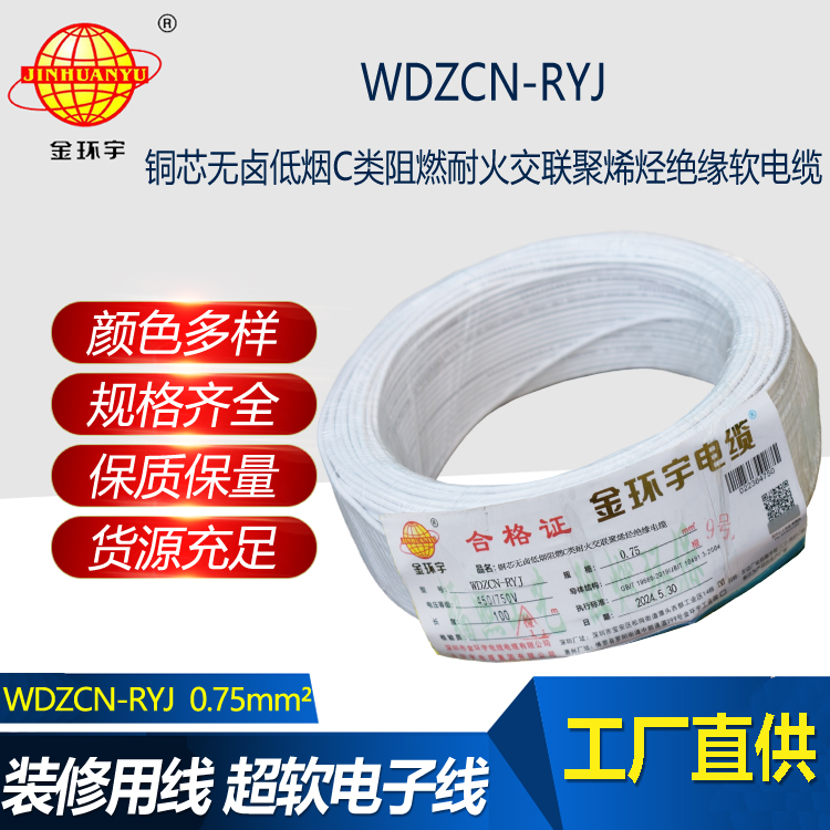 WDZCN-RYJ電纜:全稱C級阻燃耐火低煙無鹵交聯(lián)聚烯烴絕緣布電線,執(zhí)行標(biāo)準(zhǔn)GB/T19666-2005。