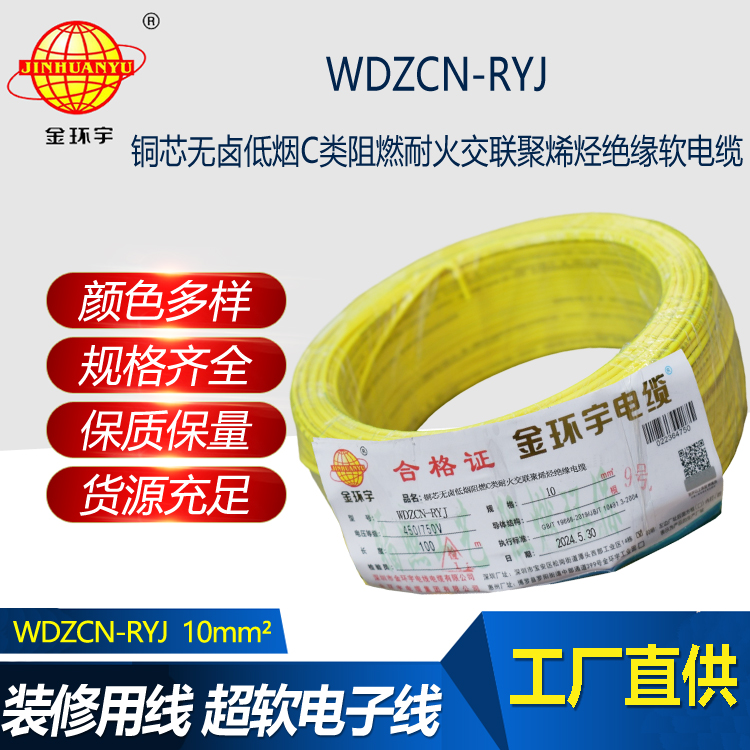 WDZCN-RYJ電纜:全稱C級阻燃耐火低煙無鹵交聯(lián)聚烯烴絕緣布電線,執(zhí)行標準GB/T19666-2005。