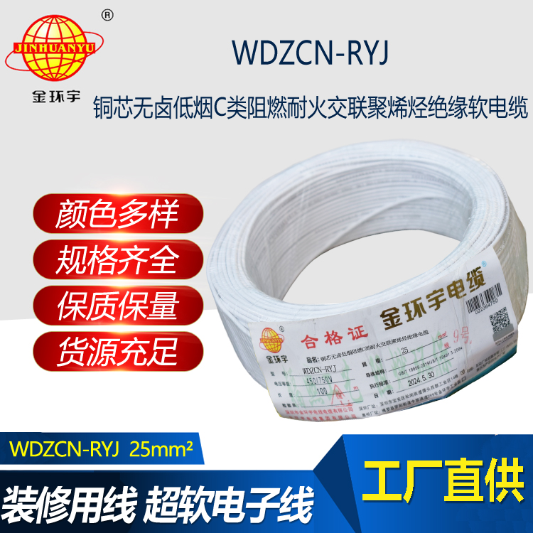 金環(huán)宇電線電纜 WDZCN-RYJ 25平方 低煙無鹵阻燃耐火電線 rv超軟電線