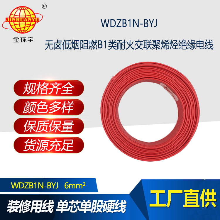 金環宇電線 B1級阻燃耐火無鹵低煙電線WDZB1N-BYJ 6平方 硬線