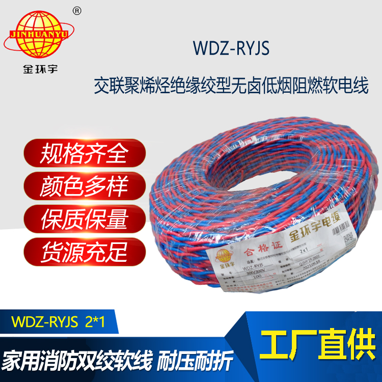歡迎選購WDZ-RYJS銅芯低煙無鹵電纜!本產品采用交聯聚烯烴絕緣絞型連接軟線,具有阻燃性能好、發煙少、無鹵酸氣體釋出等特點。適用于電廠、化工、高層建筑等重要部位的防火系統,特別適用于應急電源與戶內消防設備的供電線路等。