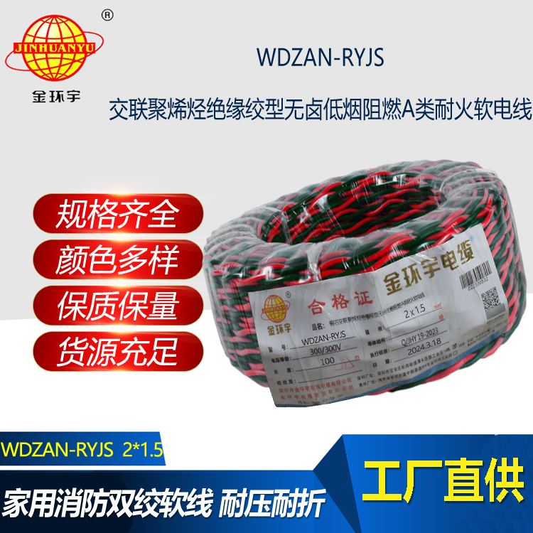 WDZAN-RYJS:低煙無鹵交聯聚烯烴絕緣a類阻燃耐火雙絞線;是消防用低煙無鹵阻燃耐火聚烯烴絕緣連接軟線是參照GB/T5023-2008等標準制訂的,其耐火特性符合GB/Tl9666類的要求。