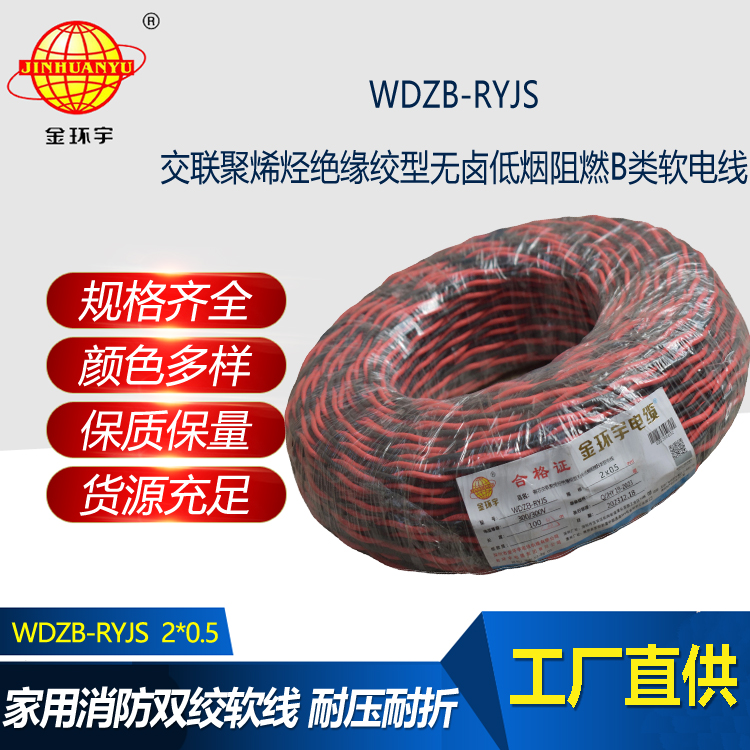 WDZB-RYJS:低煙無鹵交聯聚烯烴絕緣B類阻燃雙絞線;是消防用低煙無鹵阻燃聚烯烴絕緣連接軟線是參照GB/T5023-2008等標準制訂的,其耐火特性符合GB/Tl9666類的要求。