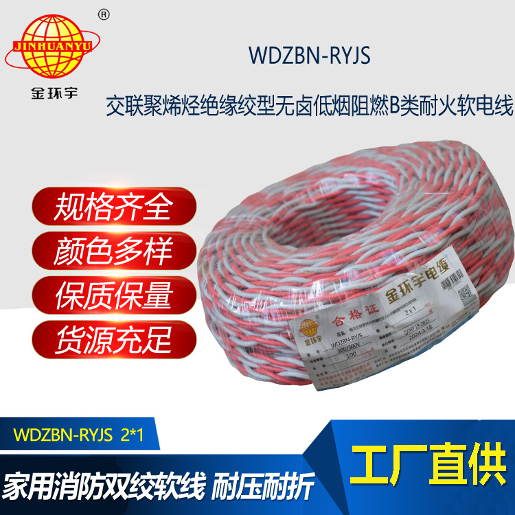 WDZBN-RYJS:低煙無鹵交聯(lián)聚烯烴絕緣B類阻燃耐火雙絞線;是消防用低煙無鹵阻燃耐火聚烯烴絕緣連接軟線是參照GB/T5023-2008等標(biāo)準(zhǔn)制訂的,其耐火特性符合GB/Tl9666類的要求。