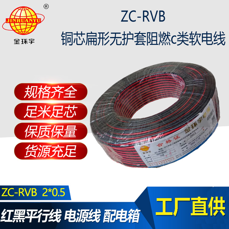 金環(huán)宇電纜 ZC-RVB 2x0.5平方紅黑電源線