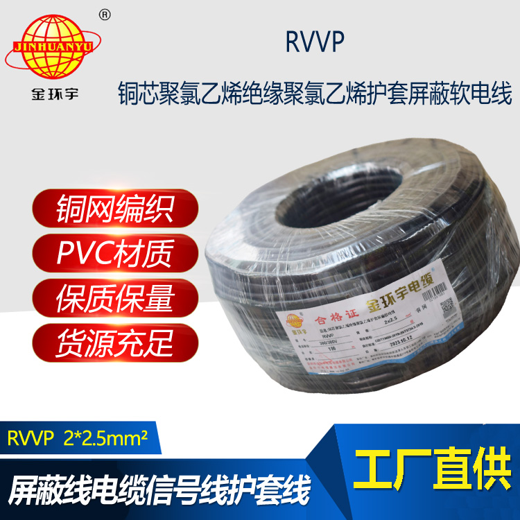 金環宇電線電纜 屏蔽線音頻線護套電線 RVVP 2X2.5平方 rvvp電纜