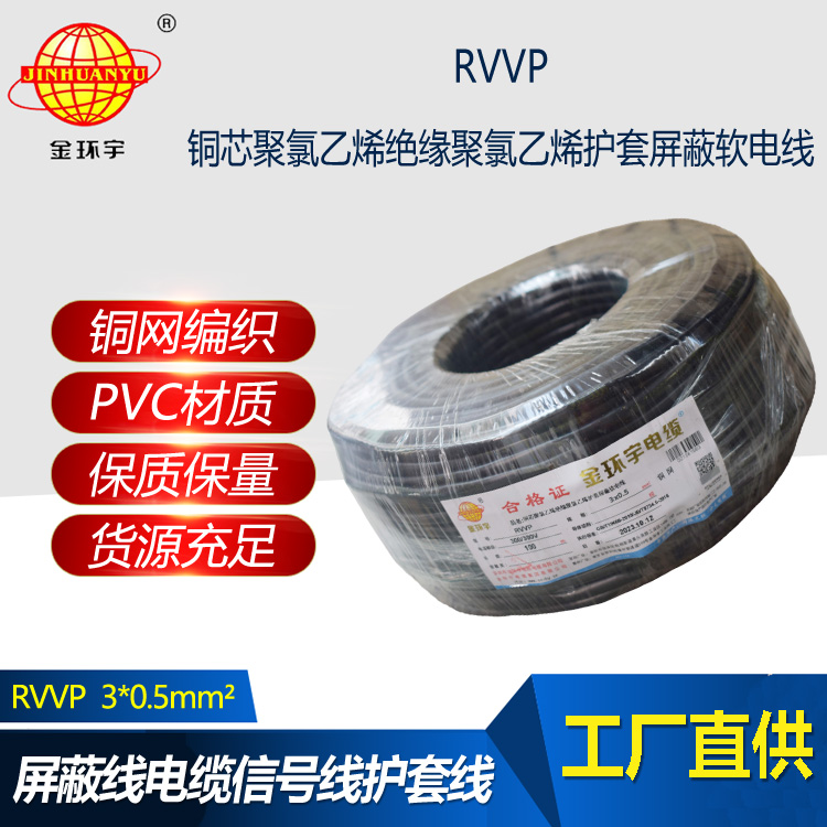 金環宇電纜 屏蔽電纜RVVP 3X0.5平方 銅屏蔽通訊電纜線