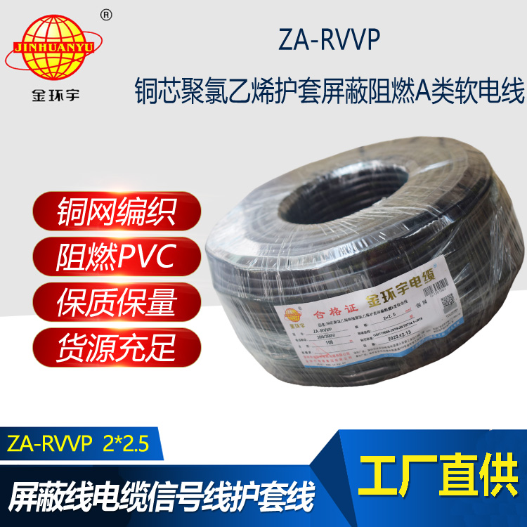 金環宇電纜 ZA-RVVP 2X2.5平方 深圳a級阻燃屏蔽電纜價格