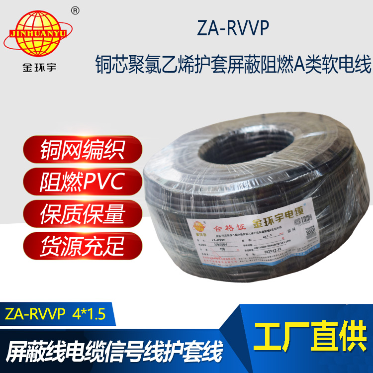 金環宇電纜 深圳a類阻燃屏蔽電纜報價ZA-RVVP 4X1.5平方