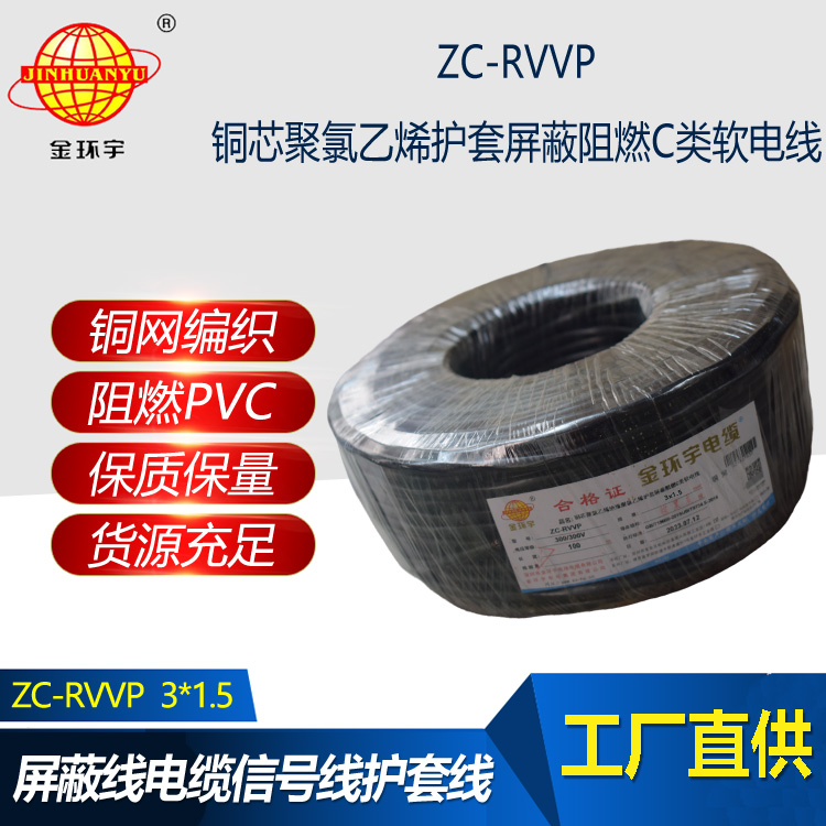 金環宇電纜 銅編織屏蔽線信號軟線 ZC-RVVP3X1.5平方c類阻燃電纜