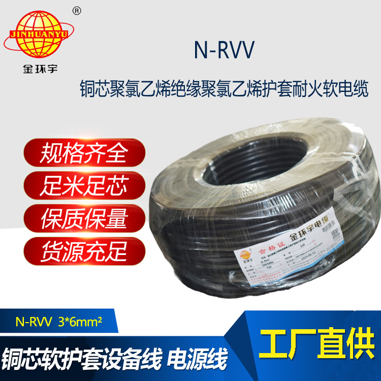 N-RVV是指銅芯耐火聚氯乙烯絕緣聚氯乙烯護套軟電纜。N表示耐火;RVV電纜是弱電系統常用的電纜,其芯線根數不定,兩根或以上,外面有PVC護套,芯線之間的排列沒有特別要求。 字母R代表軟線字母V代表絕緣體聚氯乙烯(PVC)