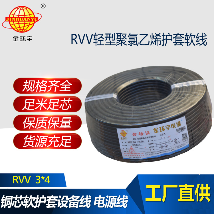 金環宇電纜 深圳rvv軟電纜RVV 3X4平方 護套電源線