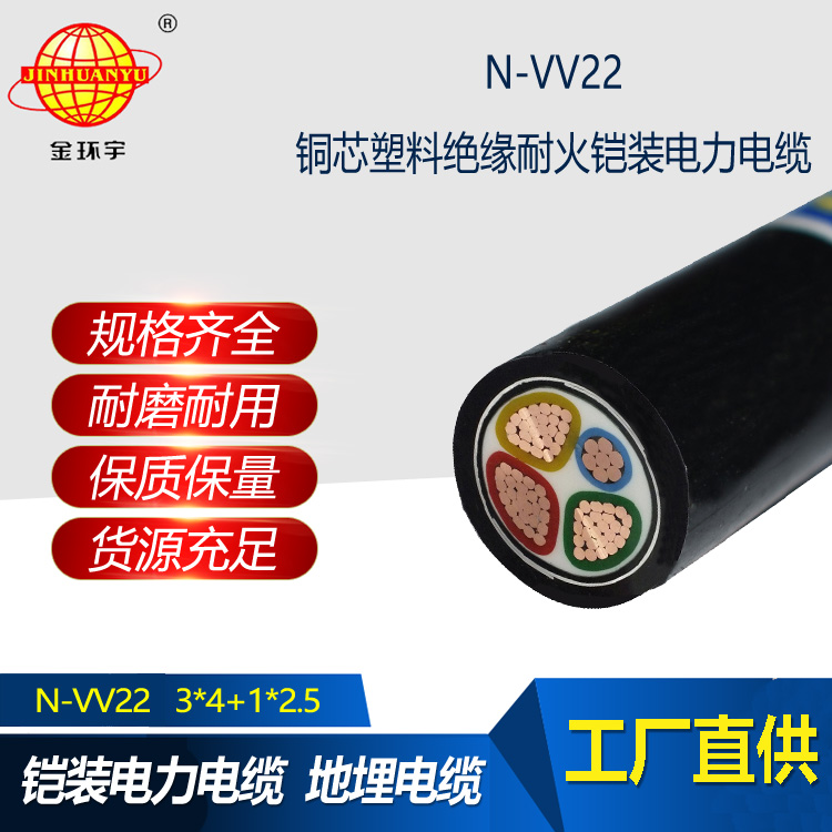 金環宇電纜 深圳vv22耐火電力電纜N-VV22-3X4+1X2.5鎧裝電纜