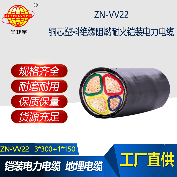 ZN-VV22銅芯阻燃耐火電力電纜用于交流額定電壓Uo/U為0.6/1kV及以下的輸配電線路上。