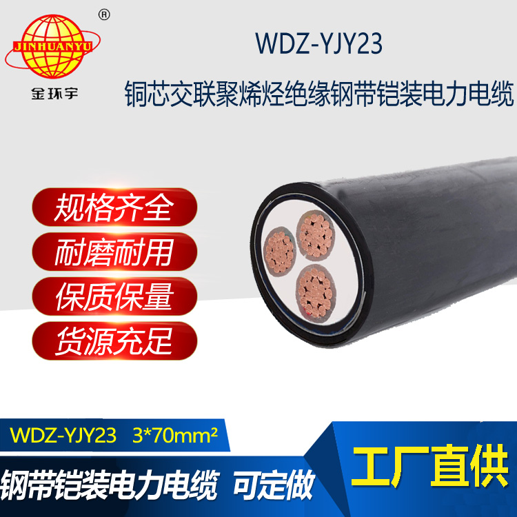 金環宇電纜 低煙無鹵三芯銅電纜 鎧裝電纜WDZ-YJY23-3X70平方