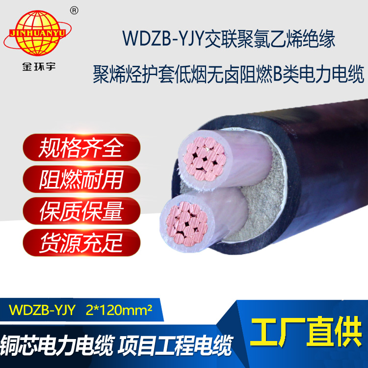 金環宇電線電纜 低煙無鹵阻燃b類電力電纜 WDZB-YJY 2X120平方