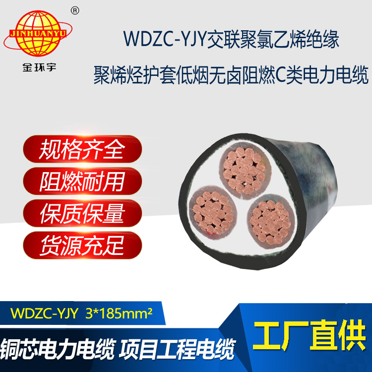 金環宇電線電纜 WDZC-YJY 3X185平方c級阻燃低煙無鹵電線電纜 3芯電力電纜