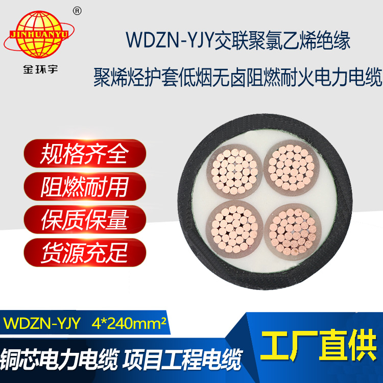 金環宇電線電纜 深圳yjv電纜WDZN-YJY 4X240平方阻燃耐火低煙無鹵電力電纜