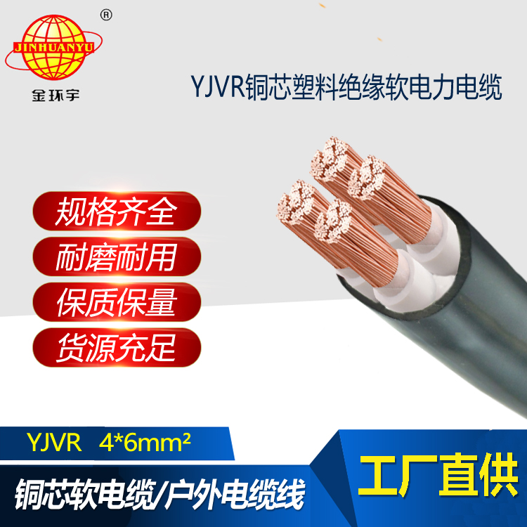 金環(huán)宇電線電纜 低壓銅芯電力電纜 YJVR 4X6 深圳yjvr電纜廠