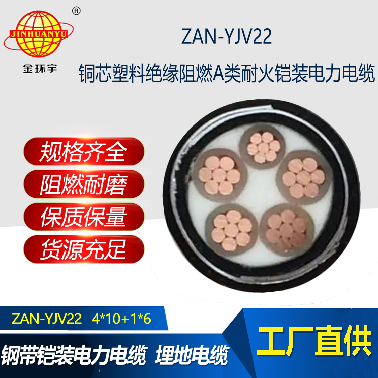 ZAN-YJV22電纜:銅芯交聯(lián)聚乙烯絕緣聚氯乙烯護(hù)套鋼帶鎧裝A類阻燃耐火型電力電纜,