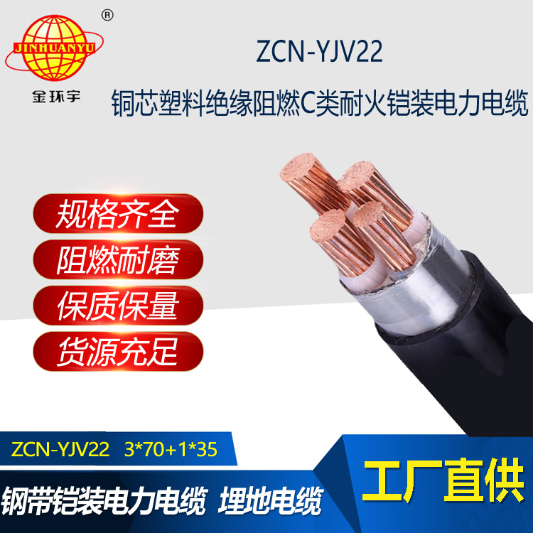 金環宇電線電纜 四芯yjv22電纜 ZCN-YJV22-3X70+1X35 鎧裝阻燃耐火電力電纜