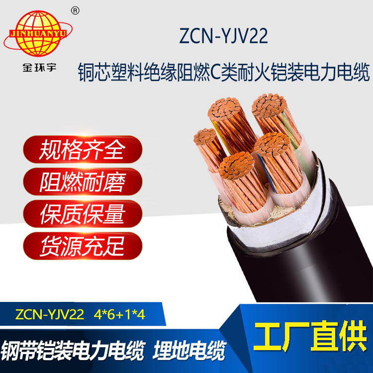 ZCN-YJV22電纜:銅導體C級阻燃耐火交聯(lián)聚乙烯絕緣聚氯乙烯內(nèi)護層鋼帶鎧裝聚氯乙烯外護套 力電纜。C級阻燃(ZC)、耐火(N)電力電纜、交聯(lián)聚乙烯絕緣(YJ)、聚氯乙烯護套(V)、鋼帶鎧裝(22)