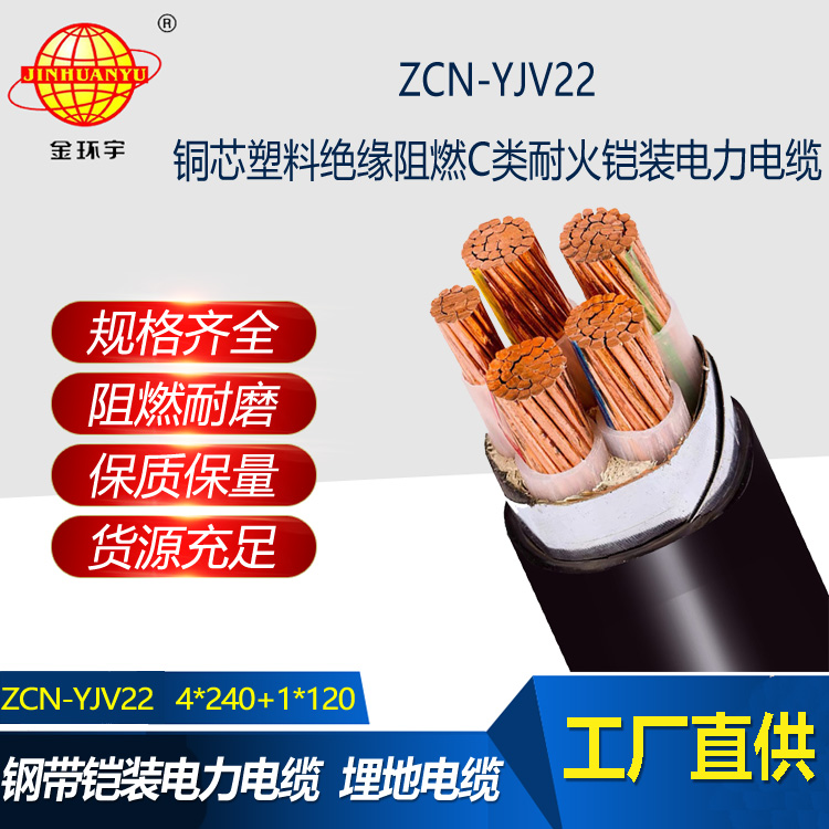 金環宇電纜 鎧裝電纜ZCN-YJV22-4X240+1X120 阻燃耐火5芯電力電纜價格
